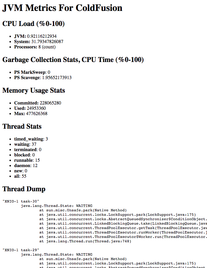 Gathering CPU Load, Garbage Collection Time, Thread Dumps And Other JVM Metrics In ColdFusion