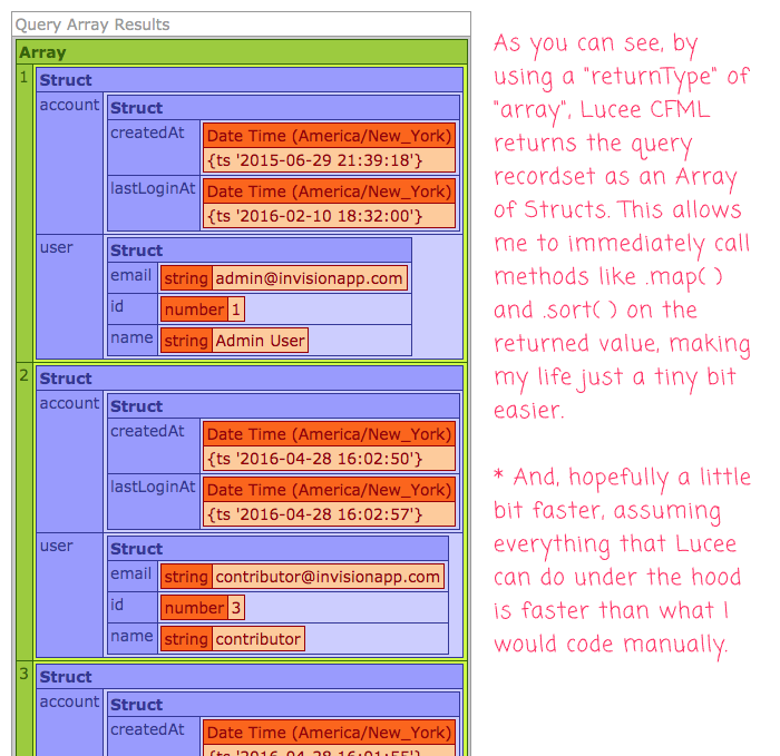 Like I said above, there's no "magic" here. Lucee is really just doing something declaratively that I normally would have done imperatively. So, really, this is just a small efficiency that removes a few lines of code. But, every little efficiently is a win. And, hopefully, the native Lucee implementation that converts the recordset into an Array of Structs is just a little bit faster than anything I would have written myself.