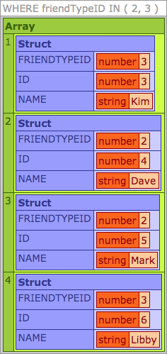 As you can see, I've created a User Defined Function (UDF), indexArray(), that takes the values in the list of IDs and converts them to Struct. I then use that Struct to filter the results via .filter(). And, when we run the above ColdFusion code, we get the following output: