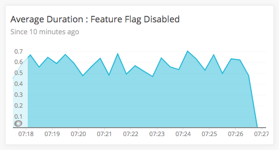 New Relic Insights graph showing average request duration when feature flag is disabled.
