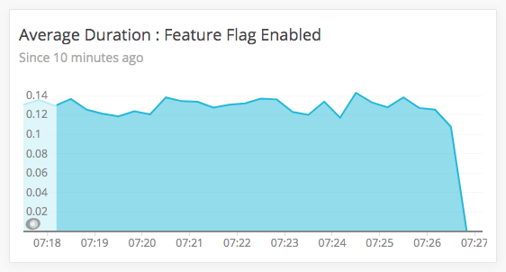 New Relic Insights graph showing average request duration when feature flag is enabled.