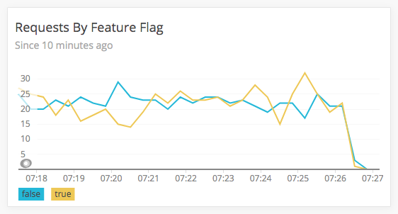 New Relic Insights graph showing breakdown of requests by feature flag.