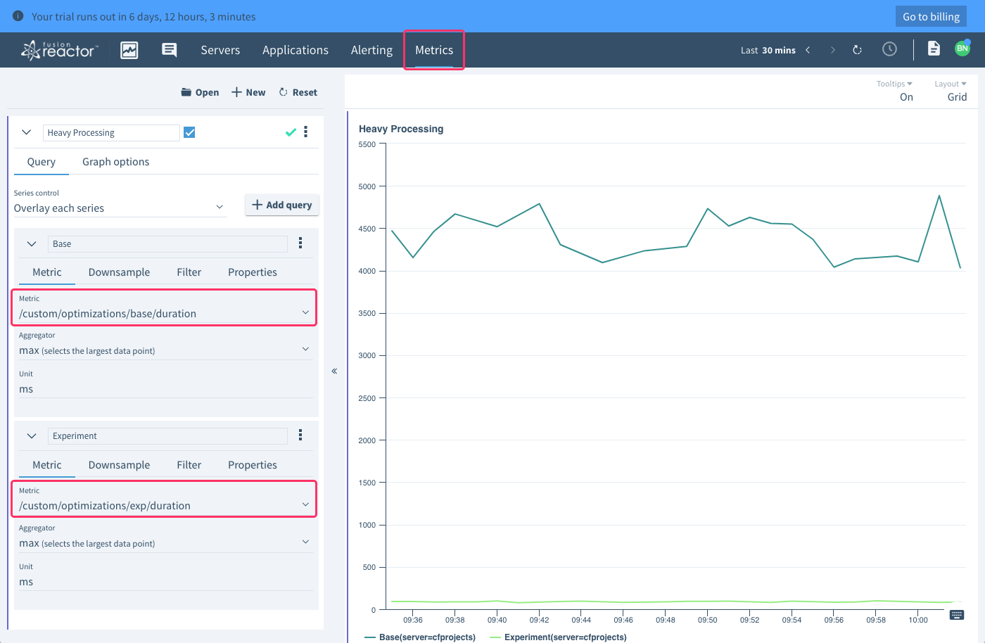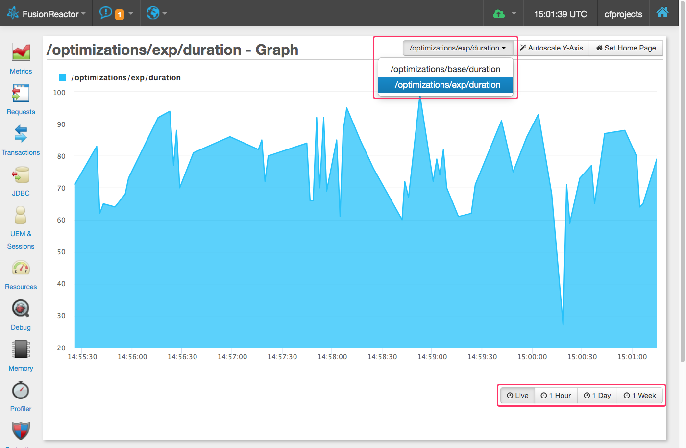 Note that the name of the metric has been automatically prefixed with /custom to differentiate it from other metrics that are implicitly provided by FusionReactor.