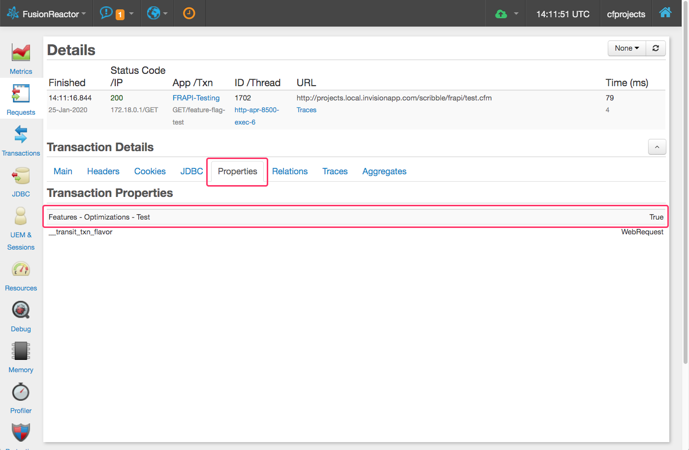Just as with the Transaction Application Name, FusionReactor will automatically get the Transaction Name from current request. And, as an added bonus, FusionReactor is built to understand several of the popular ColdFusion Application frameworks (like ColdBox, Framework/One, and Fusebox). This means that FusionReactor will automatically use the framework action variable to help identify the Transaction.