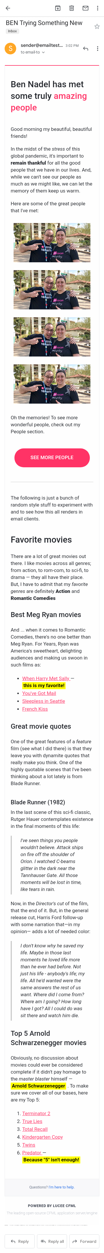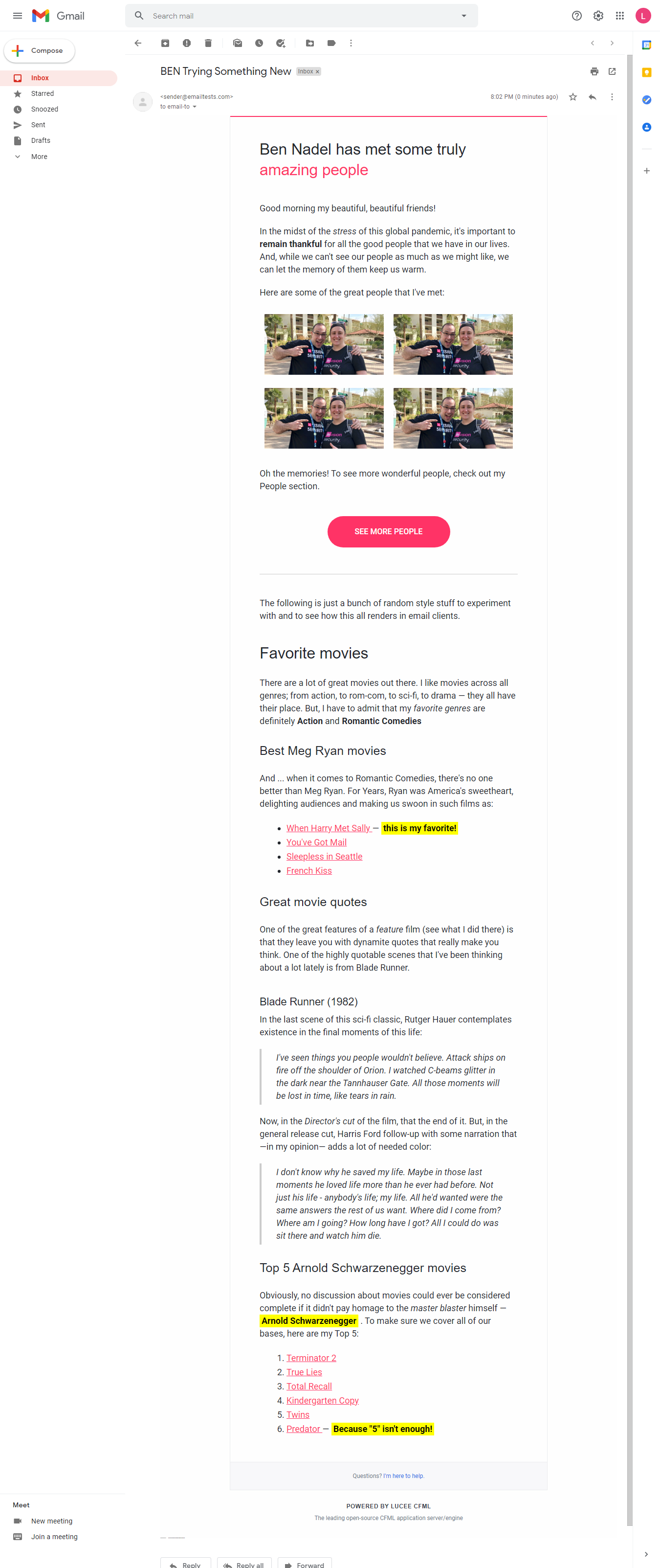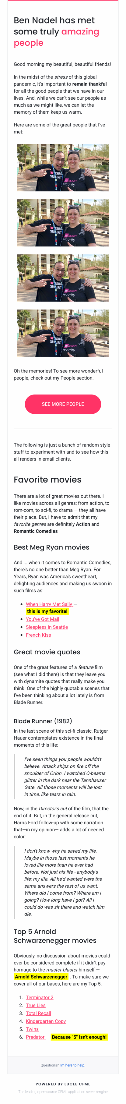 The power of the DSL - and the ColdFusion custom tags - is that even this simple markup allows us to create the following rich HTML-based email experience: