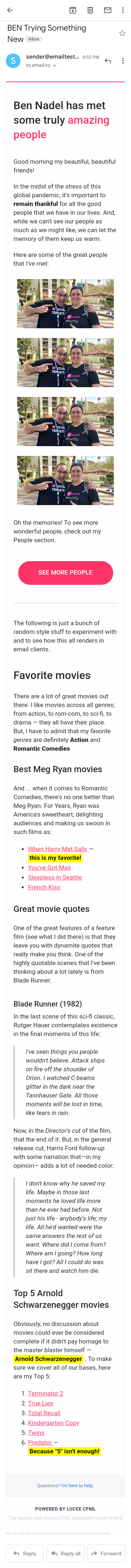 CAUTION: Just because I've created a lot of HTML-based emails in my career, do not think for a moment that this makes me any kind of export. You could easily make an entire career out of just crafting perfect email experiences. It is hard work; there are crazy number of email clients; and, targeting each client requires a lot of jank. I am - at best - mediocre at it. As such, take this post in good measure.