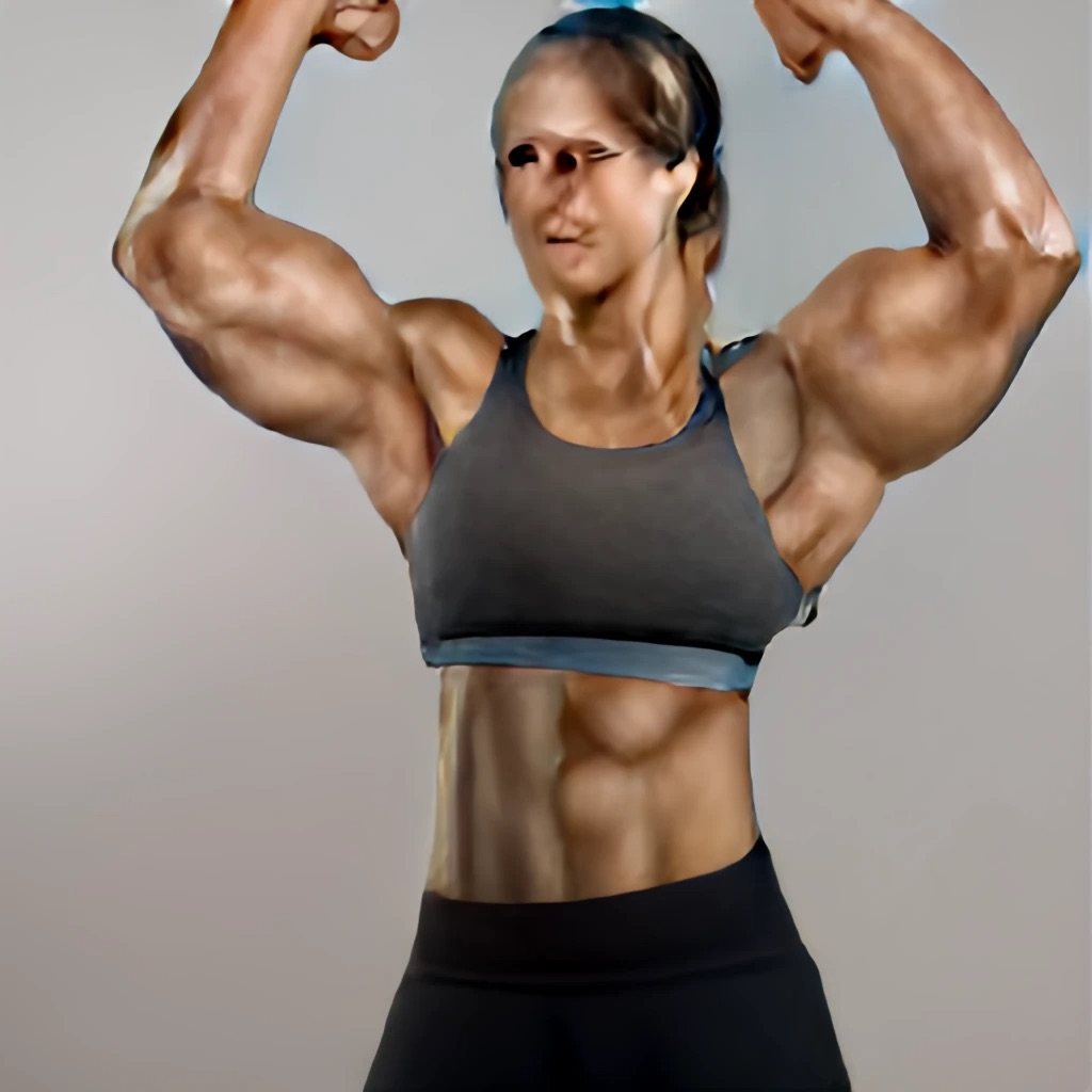 Large muscular women flexing biceps dripping in sweat but feeling confident and sexy like they own the world