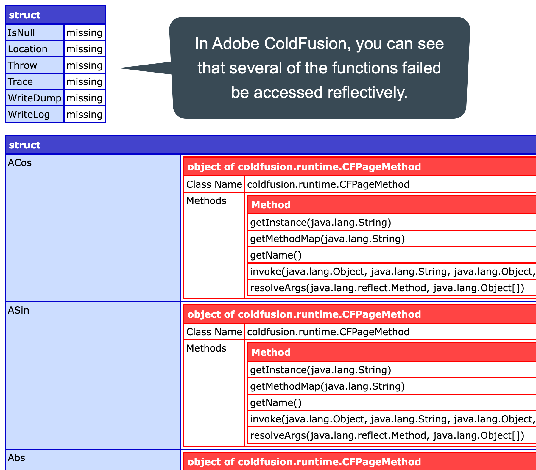 If I try to use one of the function references as a member of the resultant functionRefs struct, Adobe ColdFusion throws an error. Example: